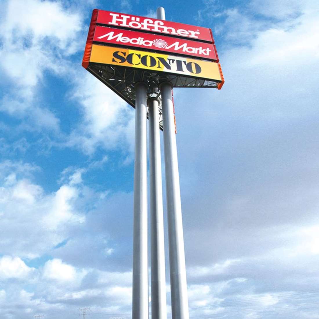 Beim Bau von Pylonen und großformatigen Leuchtwerbeanlagen sind sorgfältige Planung und Ausführung besonders wichtig. Beide Elemente sind „Visitenkarten“ und haben entscheidenden Einfluss auf die Außenwirkung einer Marke. Hier muss alles stimmen – von der Leuchtkraft über Energieeffizienz und Zuverlässigkeit bis hin zur leichten Wartung.