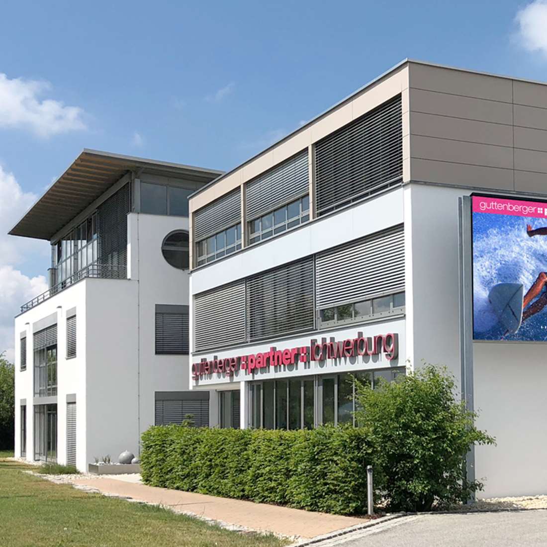 Die modernen Büro- und Produktionsgebäude im Freystädter Gewerbegebiet Rettelloh umfassen aktuell 7500 Quadratmeter. Derzeit plant das Lichtwerbeunternehmen die Standorterweiterung um zwei Hallen. „Um weiteres Wachstum zu besten Bedingungen für unsere Mitarbeiter zu ermöglichen, werden wir eine neue Vorfertigungshalle bauen und mit modernsten Maschinen ausstatten sowie eine eigene Logistikhalle errichten. Die Anträge für den Neubau sind bereits eingereicht und im nächsten Jahr soll der Spatenstich erfolgen“, erklärt Berthold Metka, Inhaber und Geschäftsführer der guttenberger+partner GmbH.