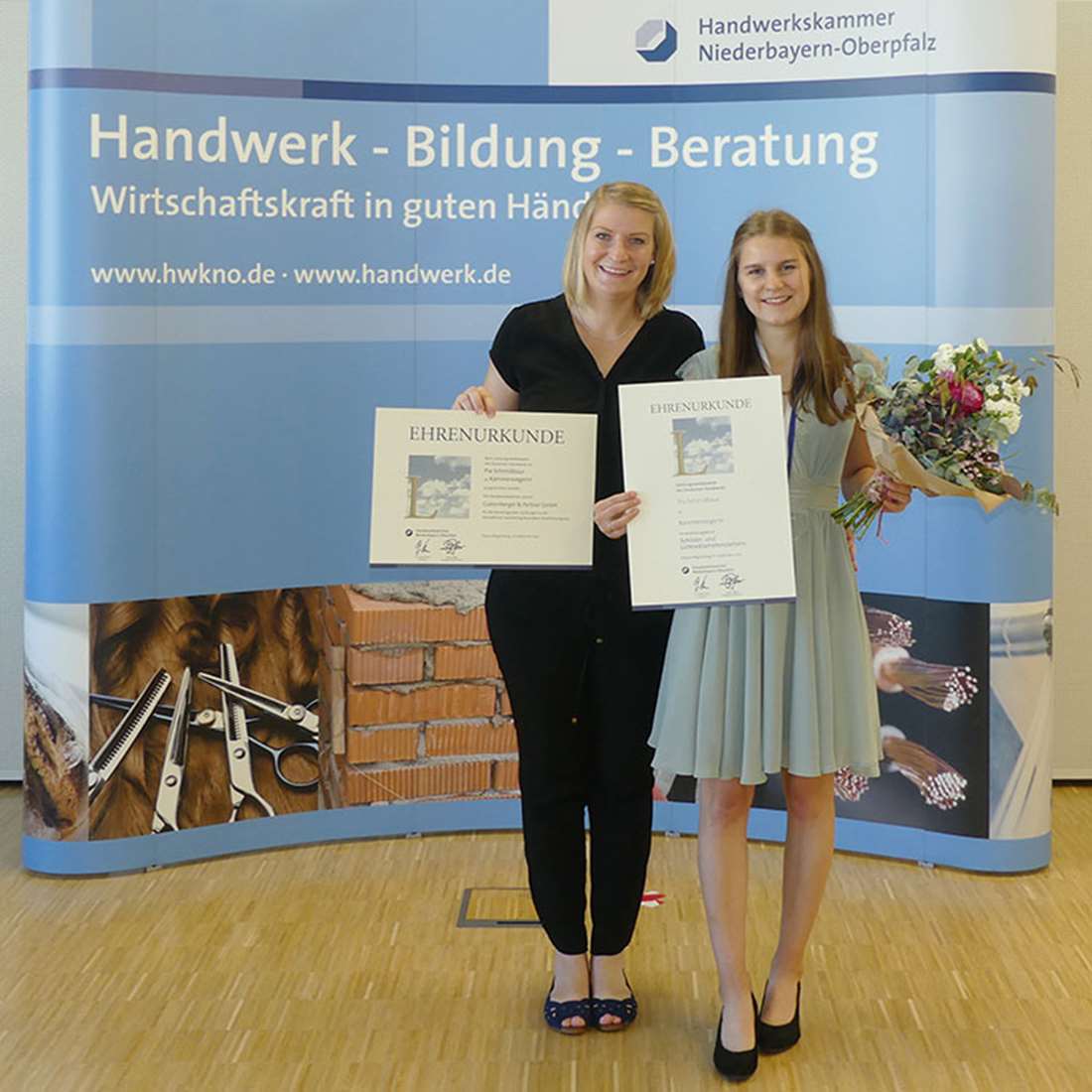Freystadt, 28. September 2021 – Gemeinsam mit Ihrer Ausbilderin Constanze Faulk nahm Pia Schmidbaur am 25.09. in der Handwerkskammer Niederbayern-Oberpfalz in Regensburg die Auszeichnung in feierlicher Atmosphäre entgegen.