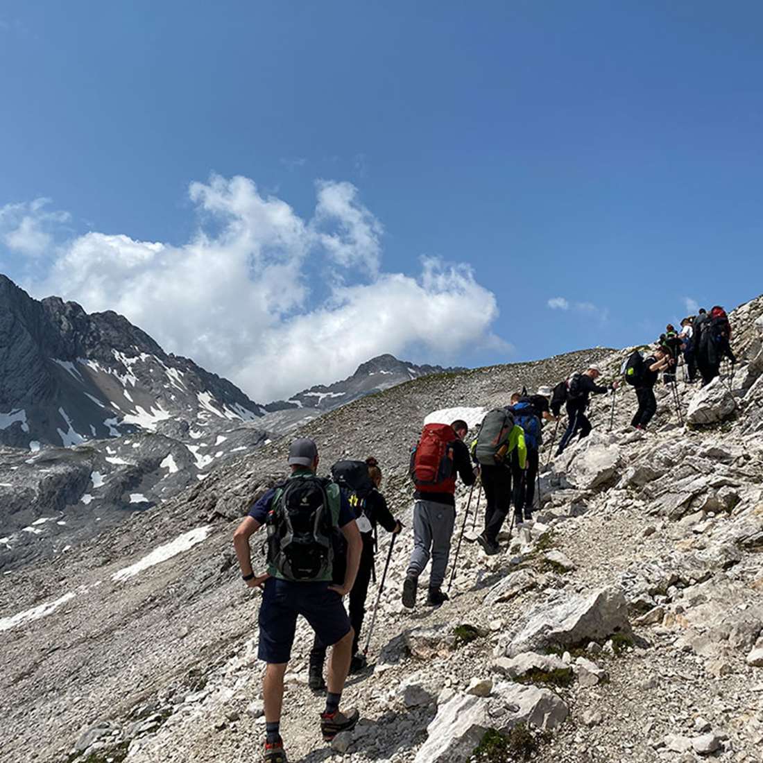 Ausgangspunkt der zweitägigen Wanderung war dort die Olympiaschanze auf 708 m. Das gemeinsame Ziel: die Zugspitze mit ihren 2962 m.