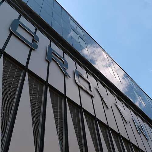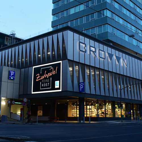Auch die Werbeanlage sollte ein besonderes Profil bekommen. Wir investierten von Anfang an viel in das Engineering, denn Zargenleuchter in dieser Buchstabengröße sind alles andere als Standard. Hinzu kamen strenge Brandschutzvorschriften und die Tatsache, dass die Werbeanlage nicht „einfach“ an der Fassade befestigt werden konnte sondern eine Unterkonstruktion hinter der Fassade geschaffen werden musste.