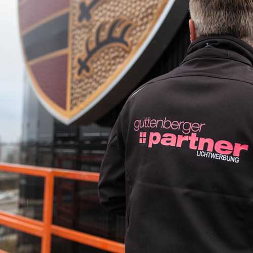 Aufgrund des straffen Zeitplans wurden die überdimensionalen Wappen, made in Freystadt, über Nacht per Tieflader nach Berlin gebracht. Dank einer im Vorfeld ausgeklügelten Befestigungstechnik konnten die gewichtigen Anlagen am nächsten Morgen mittels Kran in Rekordgeschwindigkeit am Solar-Pylon eingehakt und befestigt werden. Die spannende Montageaktion unseres Teams konnte weltweit live via Webcam verfolgt werden – und wir fieberten natürlich mit.