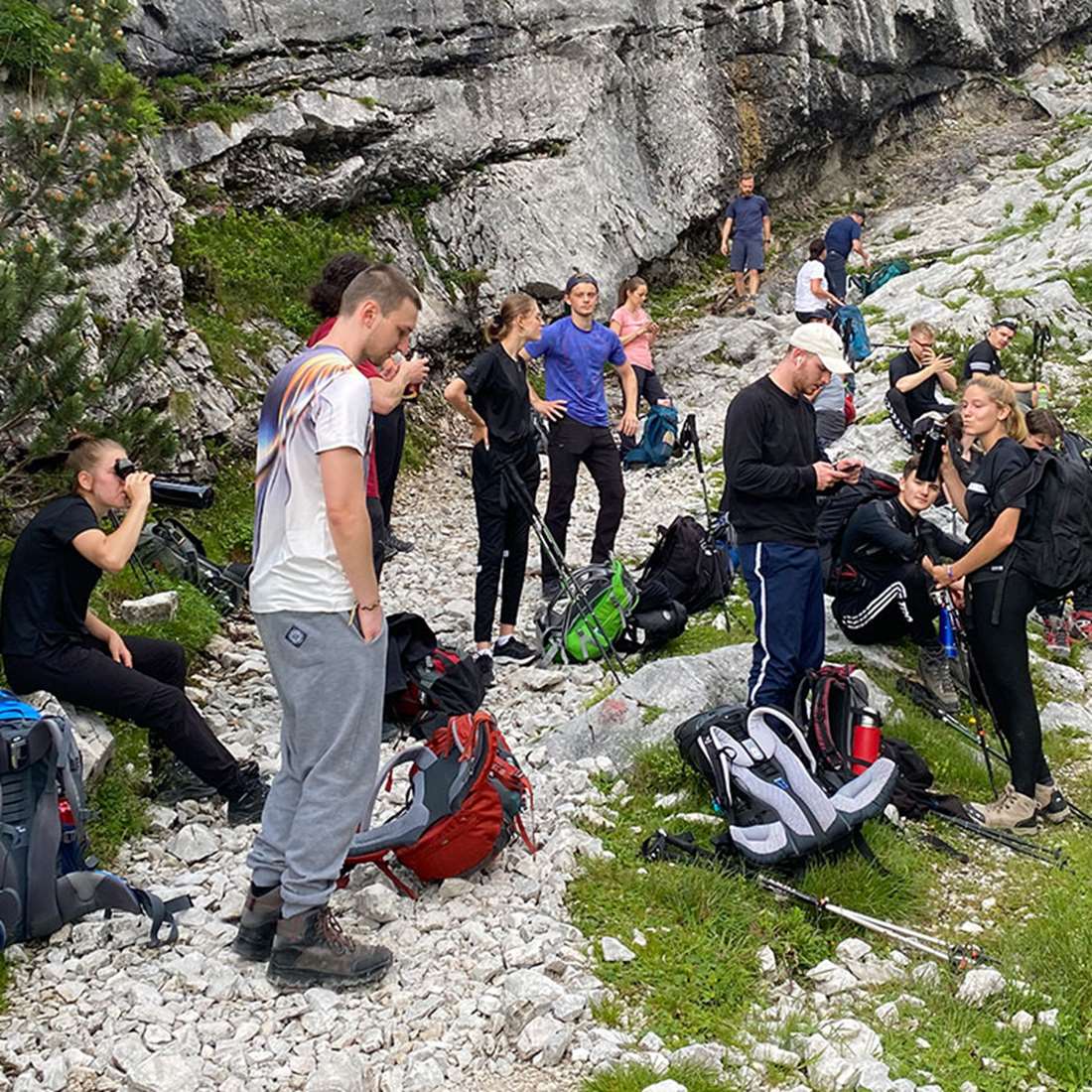 Nach einer unruhigen Nacht im Hüttenlager ging es früh morgens zur zweiten Etappe. Mit den Erfahrungen des Vortages agierte die Gruppe bereits deutlich geschlossener: Die Sportlicheren motivierten die Schwächeren, schweres Gepäck wurde aufgeteilt und man half sich aus mit Traubenzucker und Blasenpflaster.