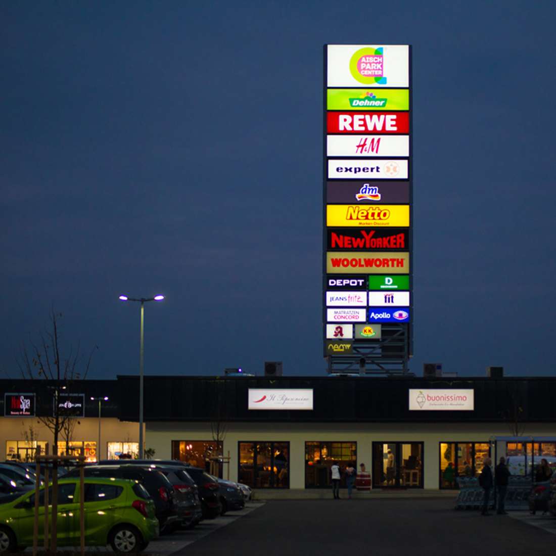 Durch die Nähe zur A3 war für den Werbepylon eine intelligente Lösung gefragt: volle Werbewirksamkeit für jede Werbefläche, ohne zu blenden.