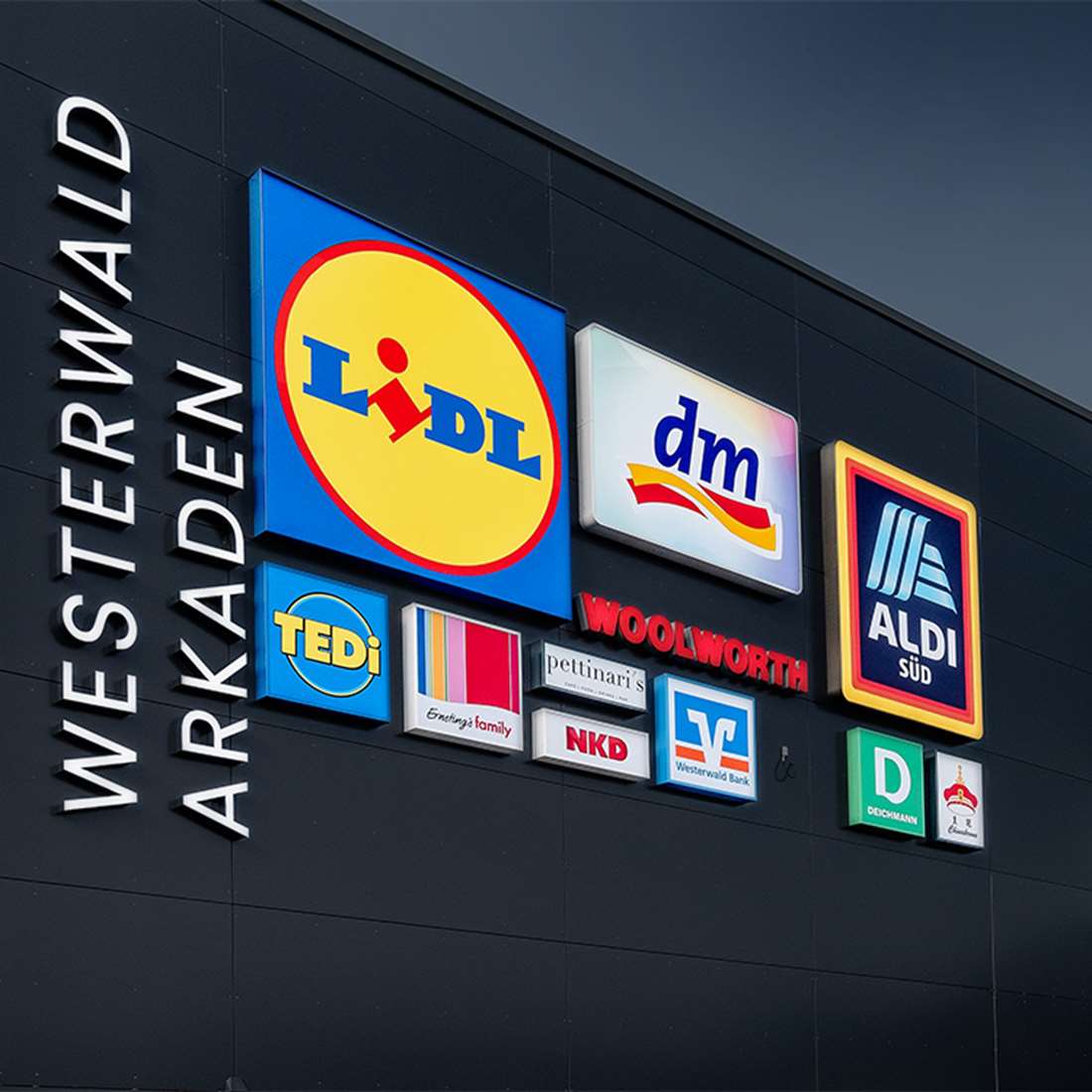 Lichtwerbung für Objekte mit markanter Architektur zu konzipieren, ist immer etwas besonderes. Und mit dem neuen Einkaufscenter in Höhr-Grenzhausen ist ein unverwechselbarer Ort geschaffen worden.