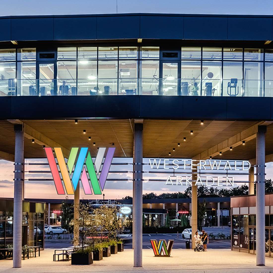 Hierfür realisieren wir gut sichtbar, doch gekonnt ausgesteuert, eine einheitliche Kennzeichnung der Shops, die sich auf einer Grundstücksfläche von 30.000 Quadratmetern mit einem breiten Mix aus den Bereichen Lebensmittel, Bekleidung, Drogerie, Non-Food-Artikel, Gesundheit & Beauty und Gastronomie präsentieren.
