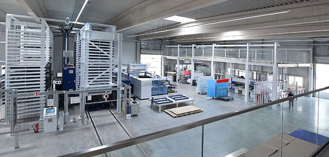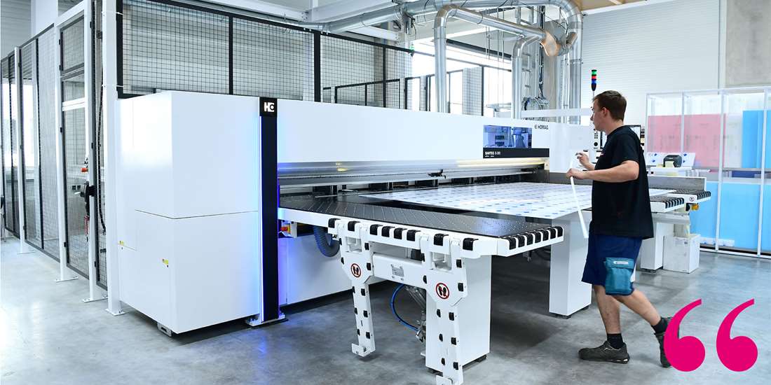 Jürgen Bittner, Teamleiter der Vorfertigung und maßgeblich an der Planung der neuen Vorfertigungshalle sowie der Modernisierung und Erweiterung unseres Maschinenparks verantwortlich, kommt aus dem Schwärmen nicht raus: „Es war ein großer Schritt aber die Realität gibt uns bereits nach wenigen Monaten recht, genau die richtigen Entscheidungen getroffen zu haben. Die voll automatisierte Zuschnittsäge bedient sich mannlos über Nacht aus dem Materialspeicher mit Rohmaterial und lagert dieses zugeschnitten wieder ein. Damit werden die Kollegen von der belastenden Tätigkeit befreit, die Maschinen von Hand mit den schweren Platten zu bestücken. Zudem sind der zeitliche Vorteil und die gewonnenen Kapazitäten gigantisch. Die unterschiedlichen Lagerfächer bieten uns zudem die Möglichkeit, viel mehr Material auf weniger Raum vorzuhalten als früher.