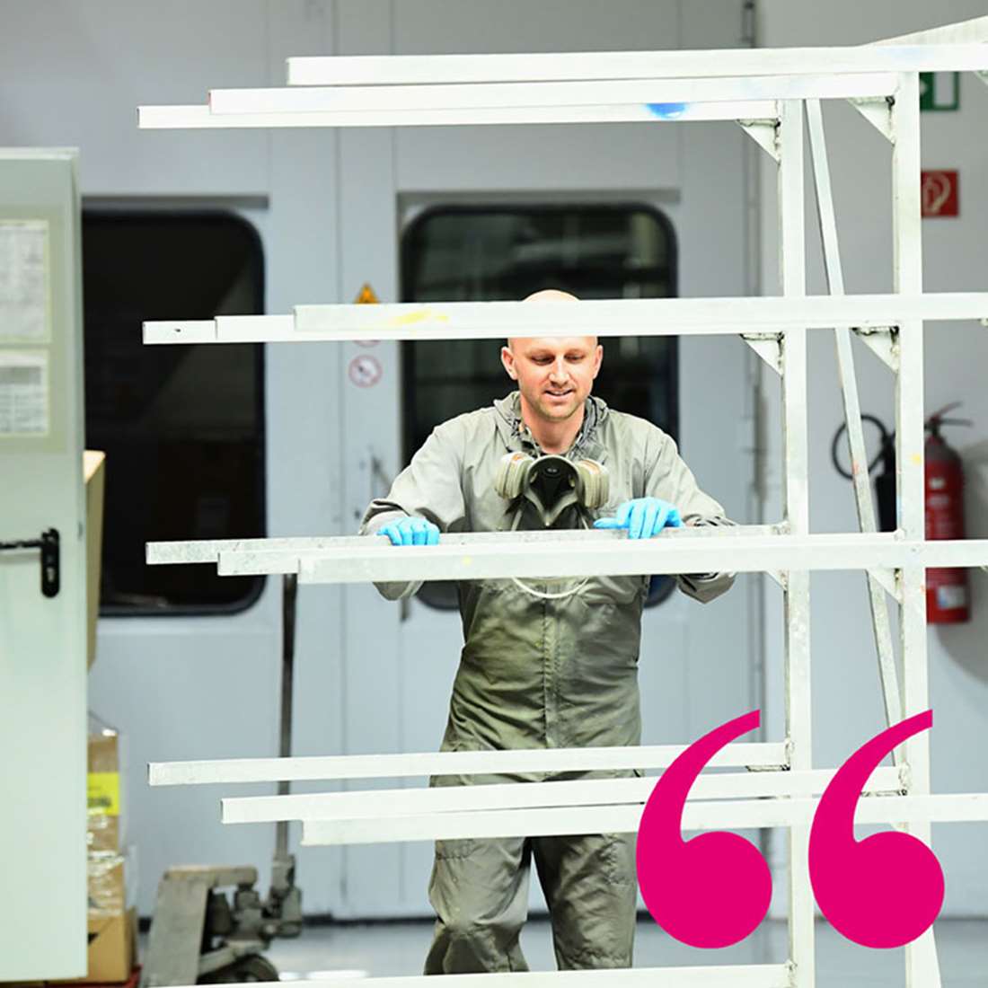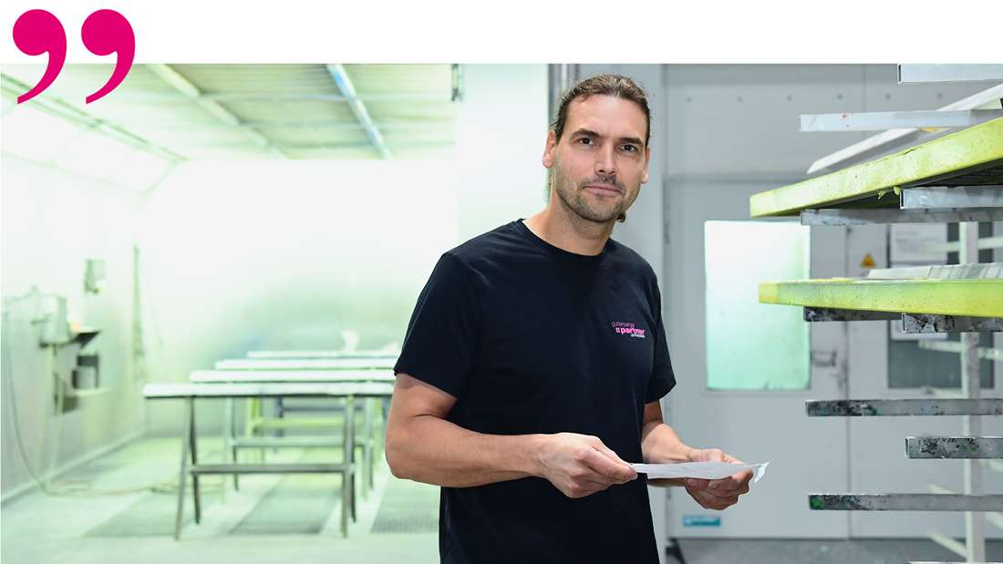 „Mit der neuen Pulverbeschichtungsanlage werden wir neue Wege gehen und unsere Lösemittelbilanz noch weiter senken. Es war mir sehr wichtig, den Blick auf Nachhaltigkeit und den Schutz der Mitarbeiter zu richten. Zudem legen wir grundsätzlich großen Wert auf hochwertige Lacke mit dem GSB-Zertifikat und das QUALICOAT-Qualitätszeichen, um die Langlebigkeit und Wetterbeständigkeit zu gewährleisten und Ausbleichen zu verhindern.“