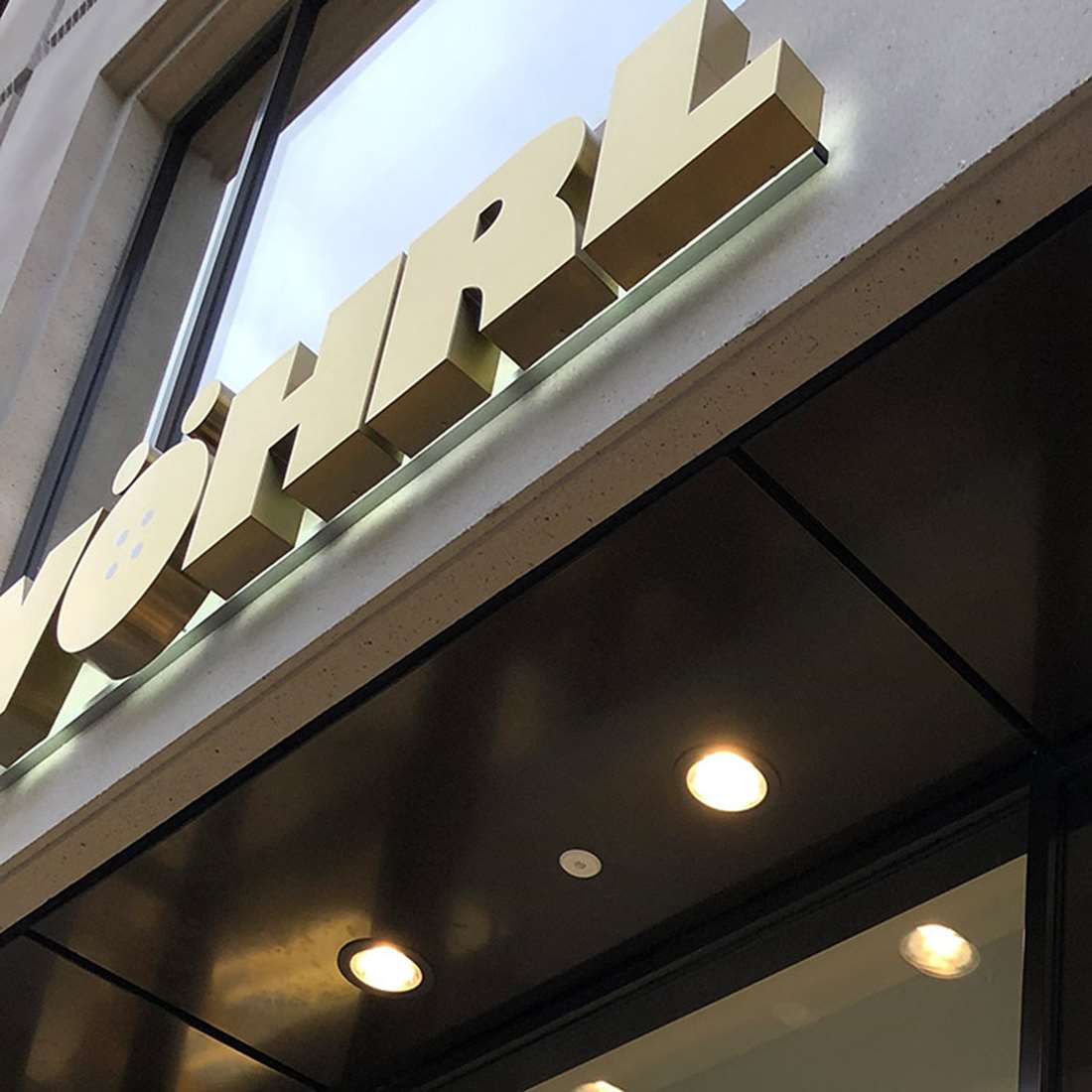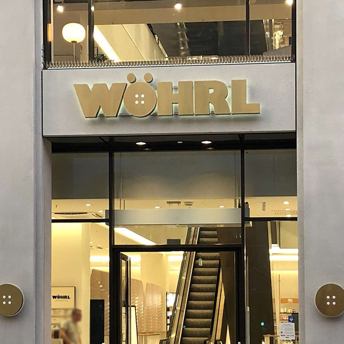 Seit nunmehr 20 Jahren realisieren wir Projekte für das Modehaus mit Stammsitz in Nürnberg und freuen uns über dieses ganz besonders. Wöhrl hatte außergewöhnliche Werbeanlagen vor Augen und nach intensiver Auseinandersetzung mit der Bauweise, stimmten sie unserem Vorschlag zu, die Anlagen in Edelstahl Gold als Rückleuchter zu konzipieren. Der zurückgenommene Schein nach hinten unterstreicht die luxuriöse Optik und passt perfekt zu der geradlinigen Fassade. Außerdem ist diese Bauweise robust und langlebig, die Oberfläche unempfindlich. Unser Kunde Wöhrl ist auch jetzt noch von unserer Idee überzeugt. Denn es ist vielleicht nicht die letzte Werbeanlage in dieser Ausführung ...